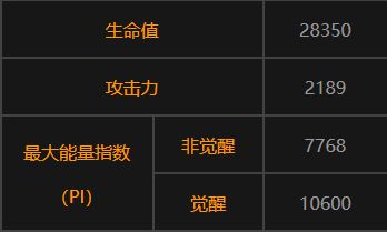 数值基于5星、等阶 5、65 级、觉醒等级 200