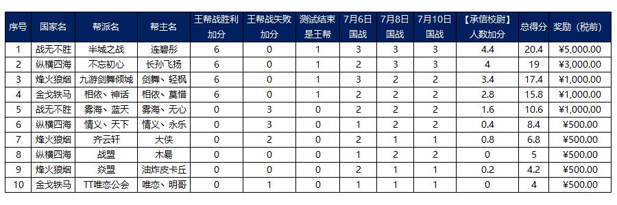 《国战纪元》安卓测试“至尊帮派挑战赛”获奖名单