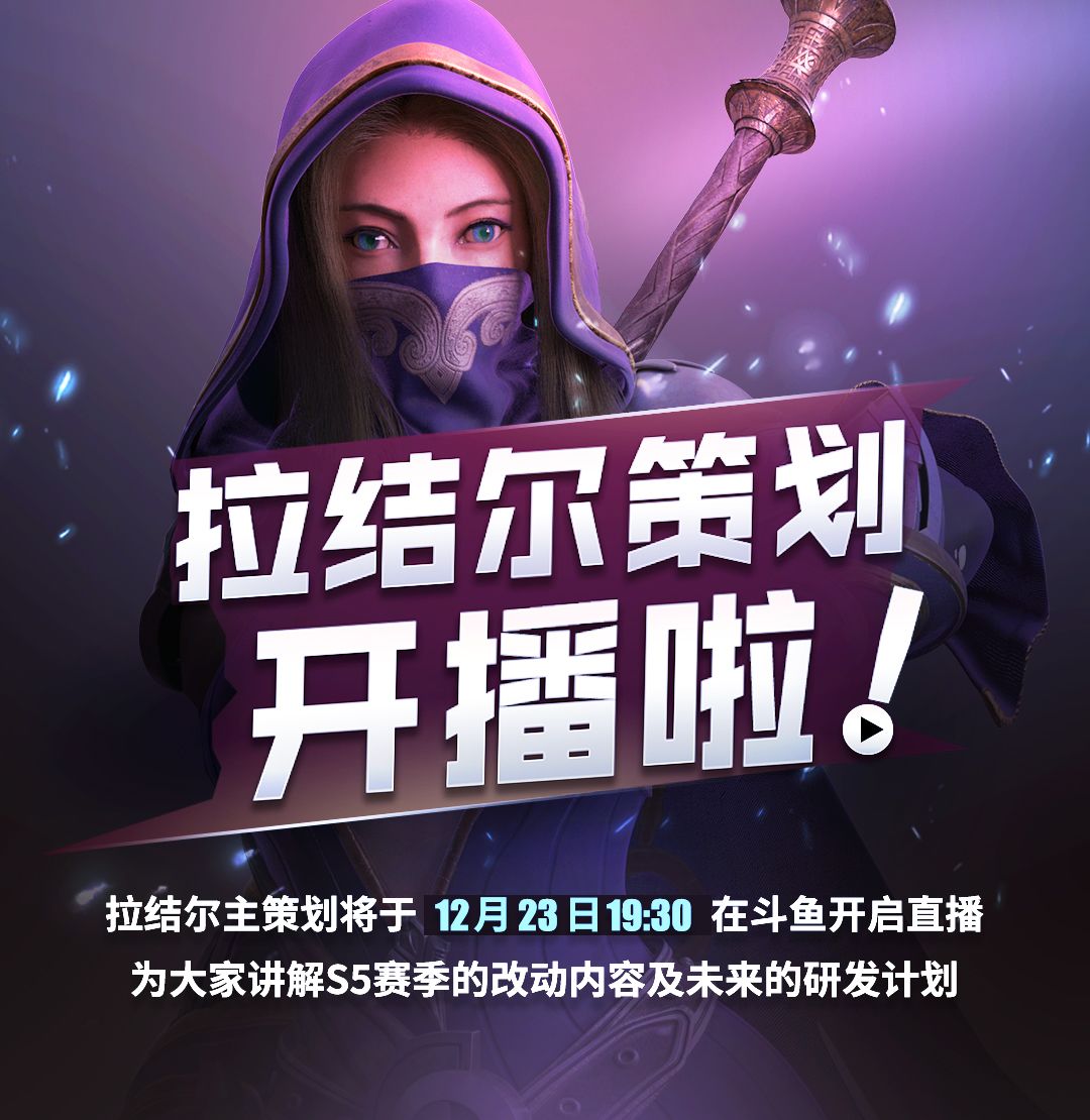 各位亲爱的探索者,拉结尔即将迎来全新版本的第五个赛季,一路走来,感触良多,我们要对探索者们长期以来的支持表示致敬,同时,为解答大家关于S5赛季的疑惑,拉结尔主策将于12月23日19:30在斗鱼开启直播(斗鱼房间号:7901462,直播地址:@斗鱼直播地址),与大家面对面交流,分享S5赛季的研发思路以及未来研发计划,欢迎各位探索者到时捧场哦~最后,我们为大家准备了盖楼赢福利活动: