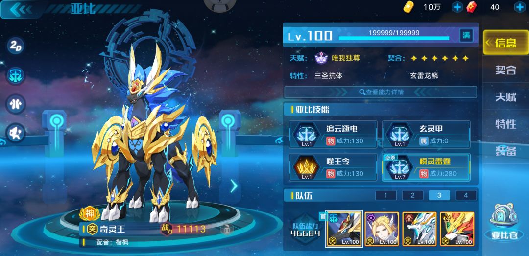 看了这么多实测我还想问你们,这个你们还要去喷吗?不被暗改就偷笑了!他很明显,定位就是一只降属的肉坦!而刚好这种类型的亚比是少之又少的,当我们面对pve的时候,兔子就只能给一个,所以我们打起来非常吃力,但是奇灵王出现了,他帮我们很好的解决了这个问题,兔子针对一个后,交给奇灵王,他能帮我们的主力抗伤害,帮我们降属帮我们降双抗,让我们的主力能有更多的空间输出!就好比我们的英雄联盟和王者荣耀,在一个五人队里,有一只能抗能打的辅助坦克是很有必要的,全队都是输出顶不过人家一个控!奇灵王,会玩的都认为他强得不可理喻,而那些不会使用的,或者是根本就没练好就去单纯的测试伤害的,更是所谓的无脑喷!