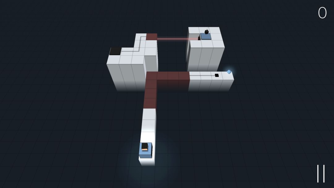 你以为你只要设计两条路线么,游戏在第二章开始加入了个棱锥,有的地方你还需要借助棱锥的帮忙,在第二章的最后一关更是出现了两个棱锥,之前还有操控两个黑色方块人的关卡,可谓是真▪烧脑游戏。