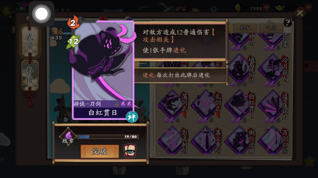 如图,每次用了白虹贯日(还没升级)都需要选择一张牌升级,在选择时如果能将不能进化的牌暗化排除是不是更方便一些