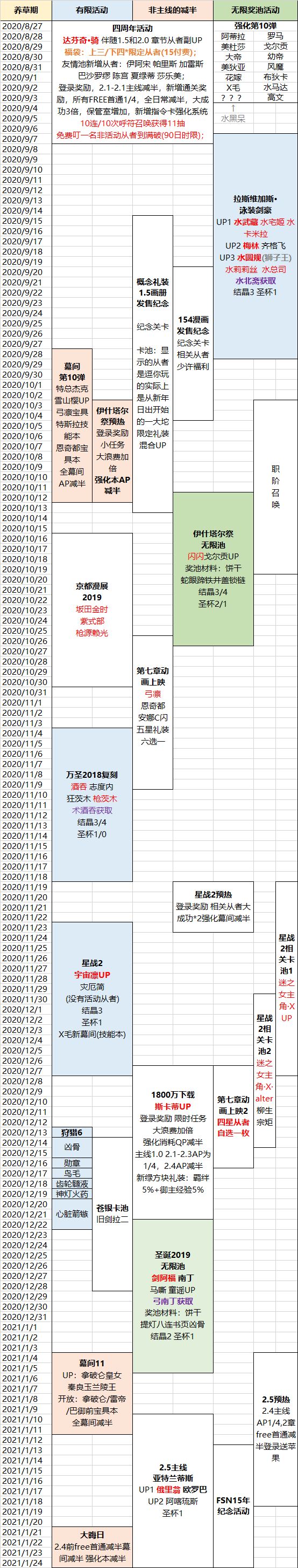 这里是根据日服时间推算出的国服的活动时间表,由于B站会对长草期进行调整,本表旨在一个对活动顺序及各个活动大约离现在还有多久(单位为周-月)的概念。