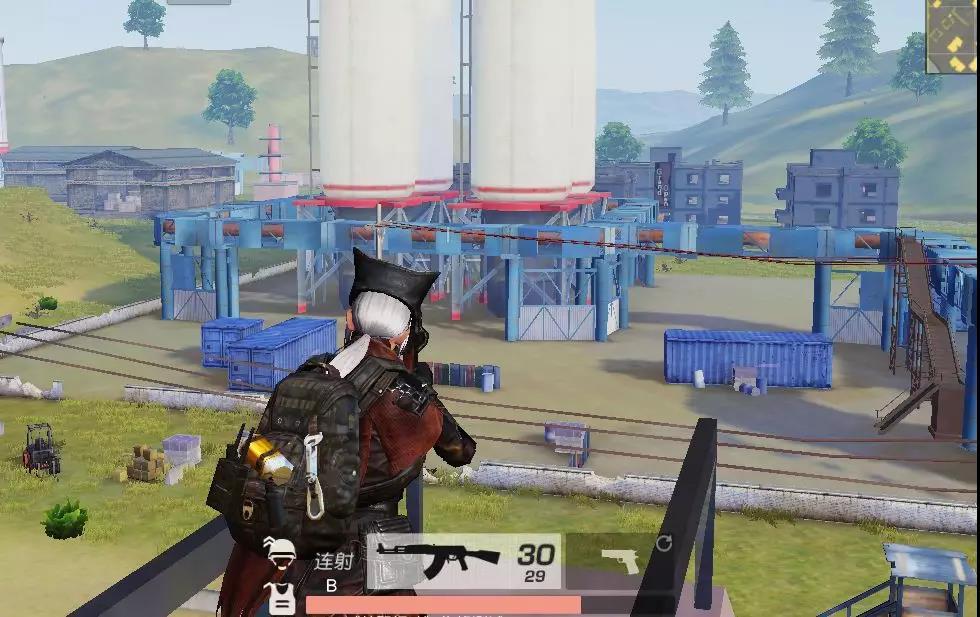 当我们在前期积累了一定的装备之后,就可以转移到烟囱区旁边的高架楼上,利用高处的视野优势,精确地狙击地面的对手,让他们在悄无声息间变成盒子。