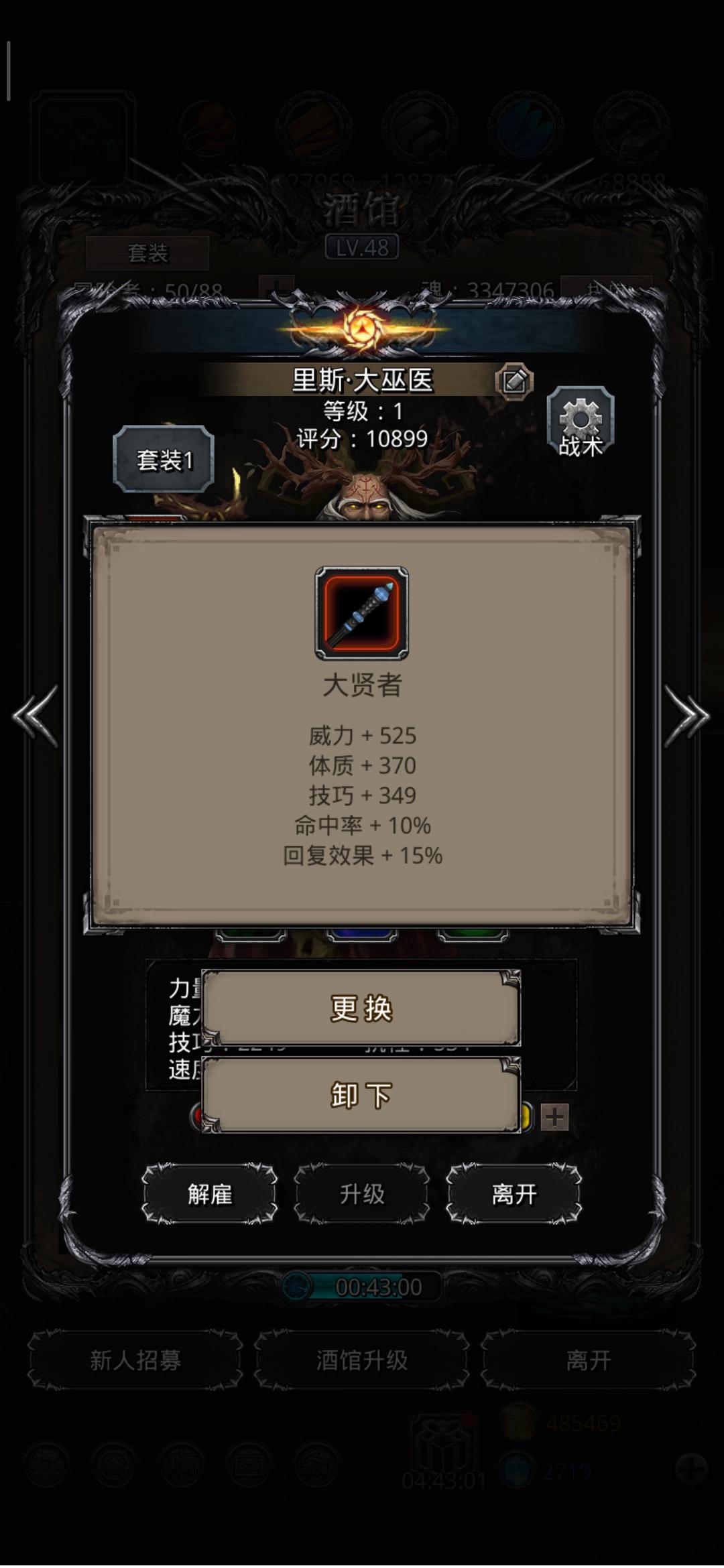巫医宁可不要魔力,也要推技巧和体质,之前巫医很容易翻车,用矮人的符文做了个体技大贤者之后稳定性大大提升,四件装备只有咸鱼袍加魔力