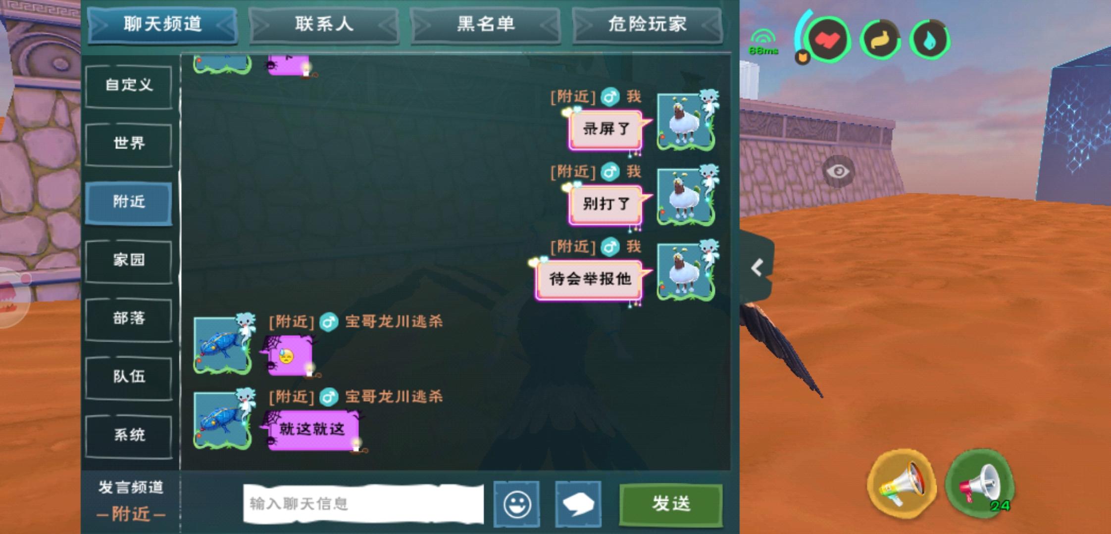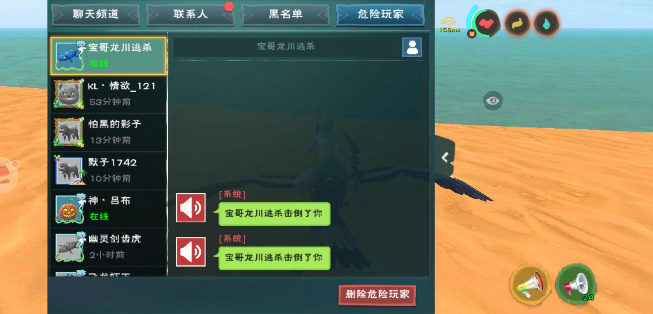 官方看看这个,开红来骚扰嘲讽(混战服这点不算啥),然后我们开红打不到他显示白名,我朋友都被打死了,这是不是外挂啊,就算不是外挂这人恶意卡bug也该封号吧,来了好几次了,一直骂我们。为了录证据我死了好几次,我朋友也死了一次还掉了些东西。第二次又来,还说不怕举报。希望官方严肃处理这个人,不然每个人都开外挂,卡无敌bug没法玩了。这人混战服108,id:宝哥龙川逃杀,还有个同党共犯id:27低