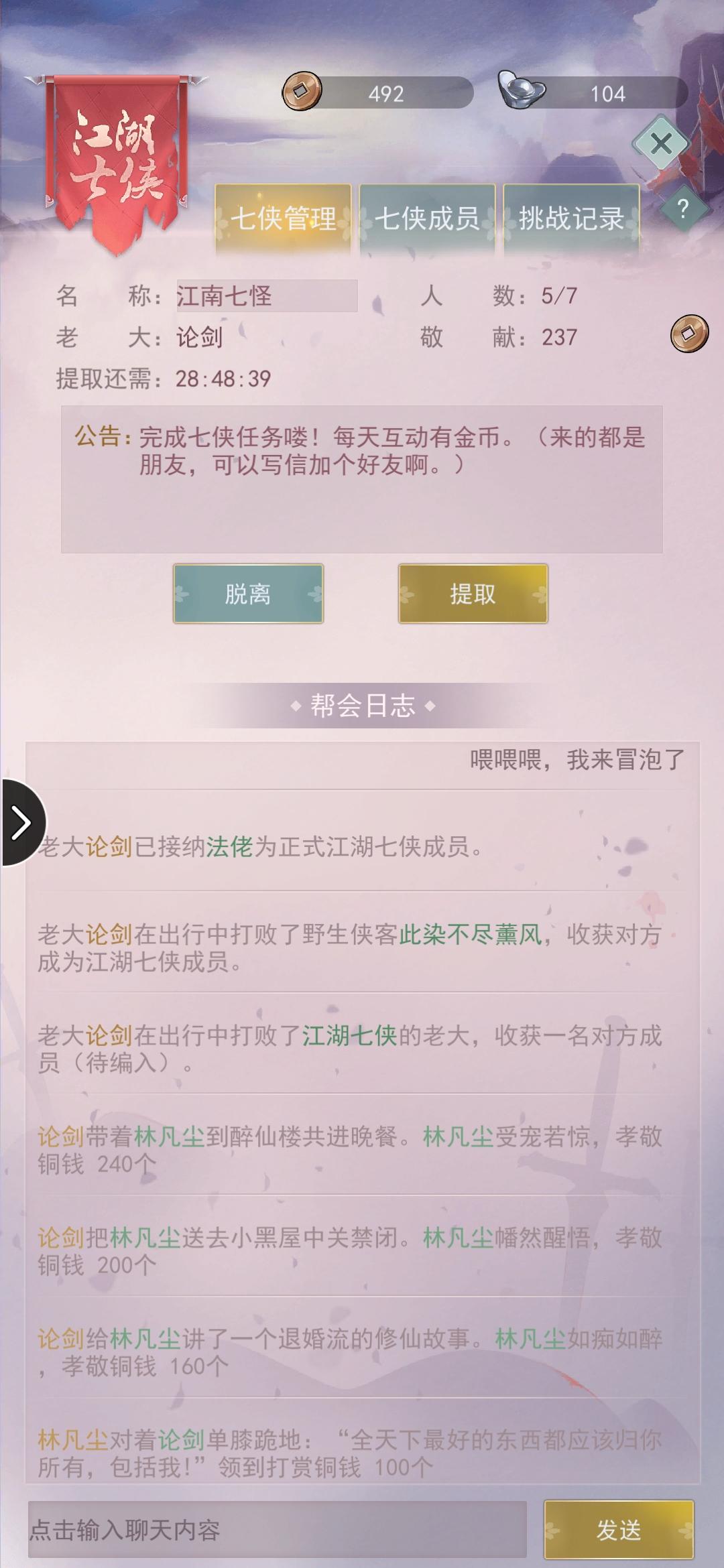 1-1如果是系统出的。ok,七侠系统终于表现出了它的用处。作为其中的一份子,平白无故要交给别人钱,但也算是有了额外的经济来源,也认识更多人,相信大家的意见不大,更主要集中在日志方面的用语,也太江湖(流氓),作为一款放置游戏这个日志看的有点难过,如果说之前所谓的先入坑后入坑,大家玩的半单机的话,这个系统的日志有点欺负人了,我是老大,我都这样觉得。