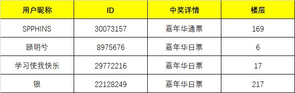 广州嘉年华门票中奖名单: