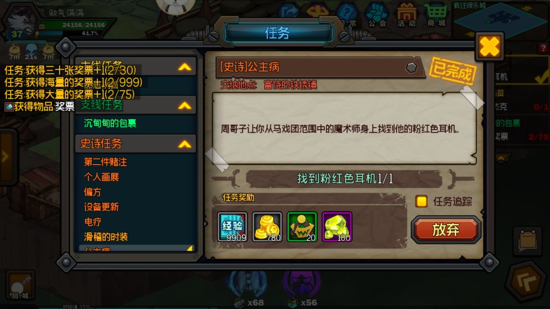 史诗任务不要急不知道怎么做就跟着主线走,可能你做些主线突然史诗任务就完成了。如果boss打不过 要么下线等第二天做日常 副本升级要么刷怪升级(可以在日常任务地图自动挂机升级 挂等级和你差不多的怪物)各有玩法 土豪后面也会卡主 任务给的经验不是很多 后期boss总会比你高几级。不想刷怪可以敲箱子采白点然后市场上卖,得到的绑定钻石可以买疲劳 集装箱买橙色碎片 !