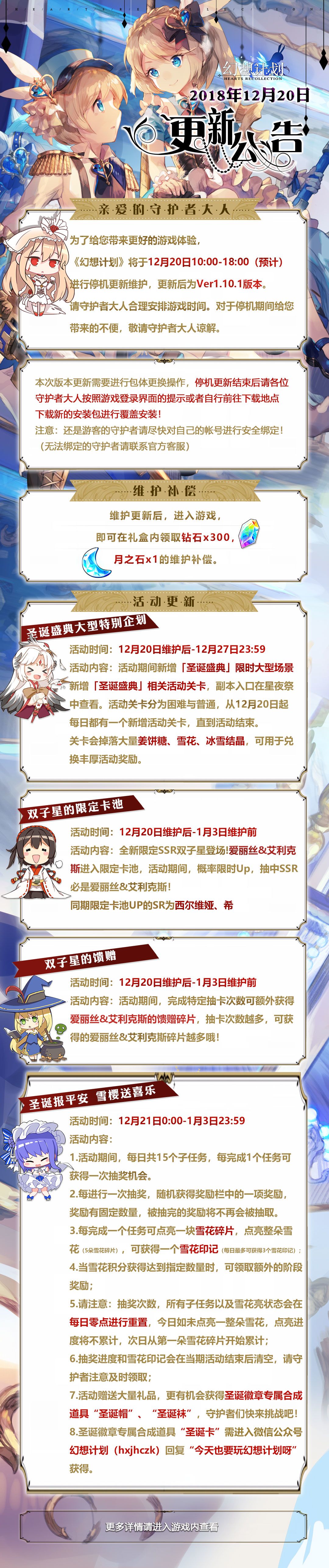 幻想计划将于12月20日10:00进行停机更新维护,更新为Ver1.10.1版本!