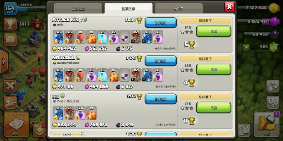 可以看出我是在四王全躺的情况下打的资源,如果有王可以更轻松。