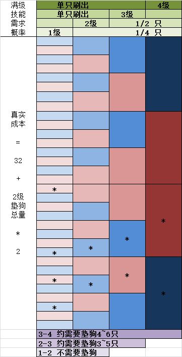 这4只垫狗可以是3-4,也可以是2-3,建议用后者,有效减少升级成本;