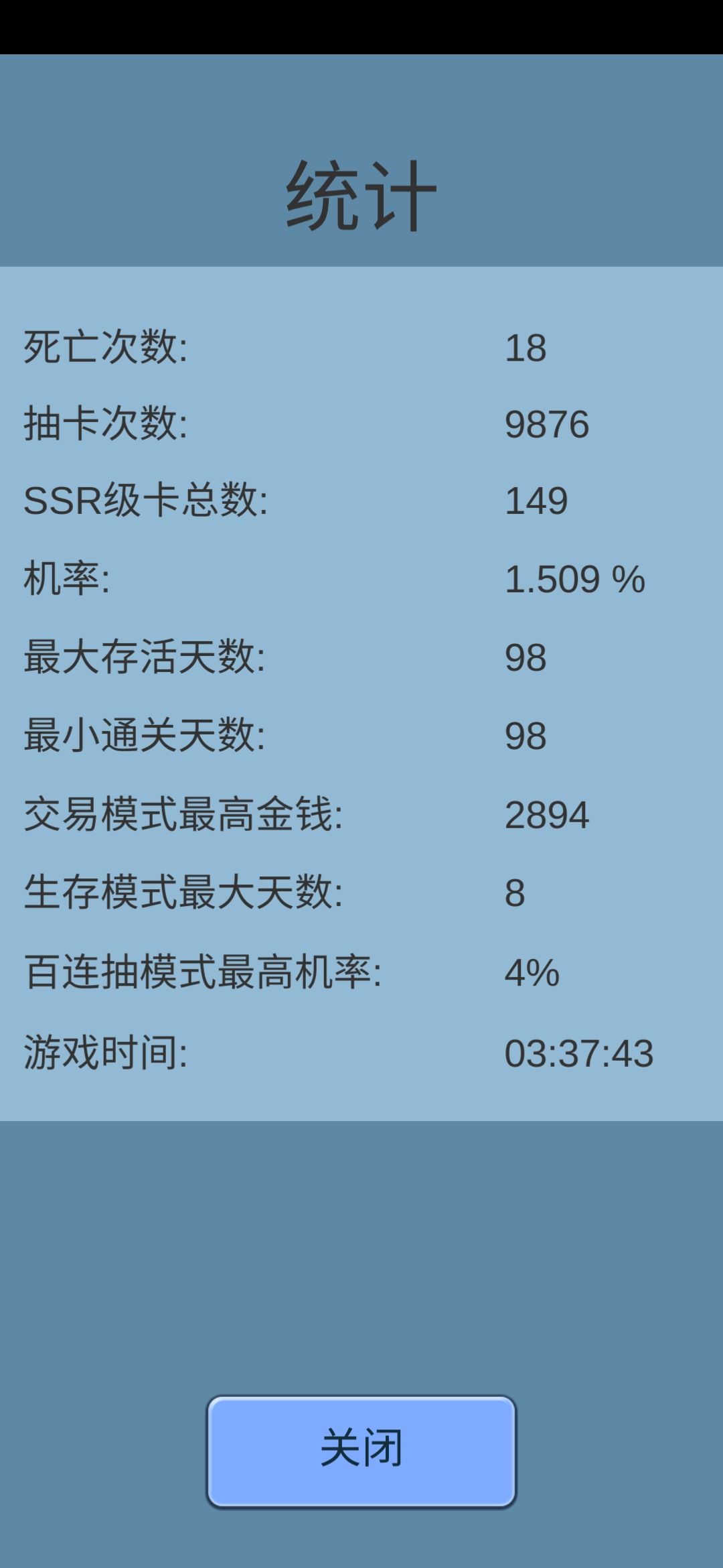 没事看看商店,如果有一天食物和水涨到了50-70+,手中有余卡,马上换(快死了除外),没有也想办法凑,然后用换的钱继续抽,抽中食物卡水卡继续换。。。(注意保底几张水卡食物卡)而镇定剂和那些增益会提高这一循环的持久时间