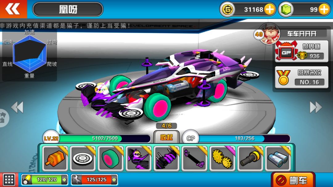 我玩这游戏一个多月了,觉得很有意思,车和零件也不像其他游戏那么难获得,所谓的神车也没有比其他车难抽,概率还是很真实的。以下是这些时间的收获,真的很良心的游戏,会继续支持。