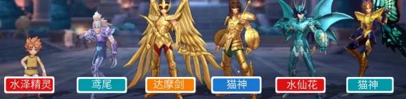 在这里还需要解释一下,想要让神圣衣瞬打出更高爆发的话首选还是猫神,不过在近期神圣衣瞬被死斗的概率过高,可能短时间内无法轻易使出究极·星云风暴,而且射手的登场率也比较高,所以这几期推荐的都是选用圣甲虫来支撑血量保证自身存活度。