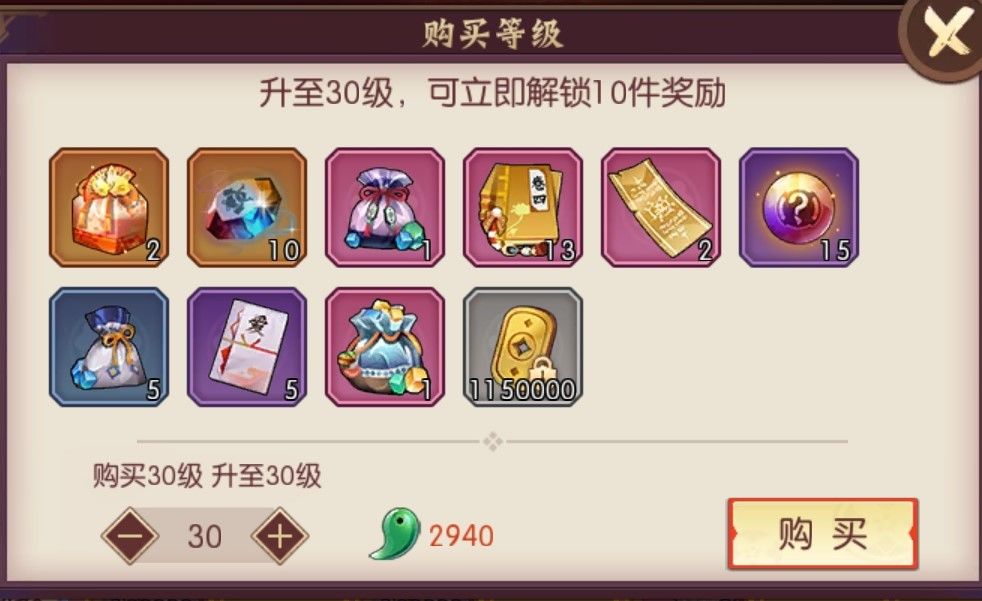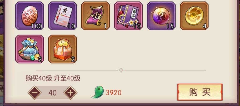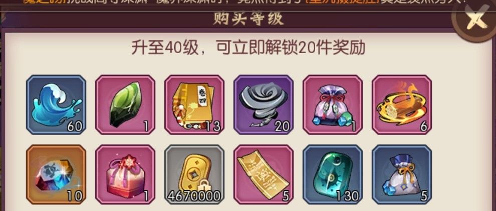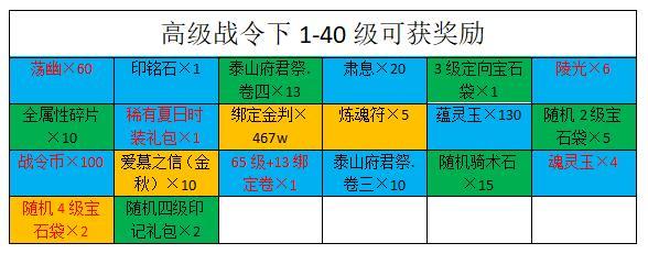 (2)花680绿勾玉进阶高级战令即可升到40级,升到40级后我们可以额外获得下图/表内奖励物品: