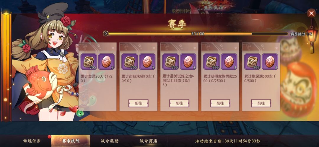 接着就是压轴的赛季挑战任务,赛季挑战大号一般都能完成只不过需要较长时间累计。