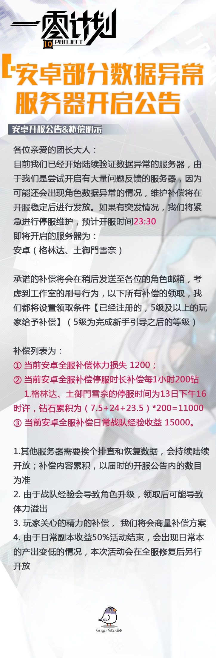 ④ 安卓的限时活动&限时卡池会在修复完成后统一顺延