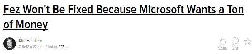 实际上,媒体的负面印象有很大以部分来自Fish个人,而不是《Fez》这款游戏。