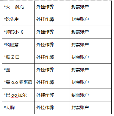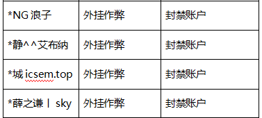 《绝地求生 全军出击》官方运营团队致力于为所有玩家提供公平绿色的游戏环境,对外挂作弊行为秉持“零容忍”态度。腾讯游戏安全中心自游戏测试开启即部署7*24小时游戏内外下全天监测,以保证第一时间响应并处理游戏内外挂作弊等问题,保障游戏的稳定运营。在各位击友积极响应绿色游戏支持下,目前游戏内安全状况良好,有外挂、作弊行为的账号能够第一时间得到相应惩罚,感谢大家的监督与支持,也希望在后续游戏过程中击友们能够同项目组一起协力净化游戏环境,保证绿色游戏体验。(后文附部分封停账号名单)