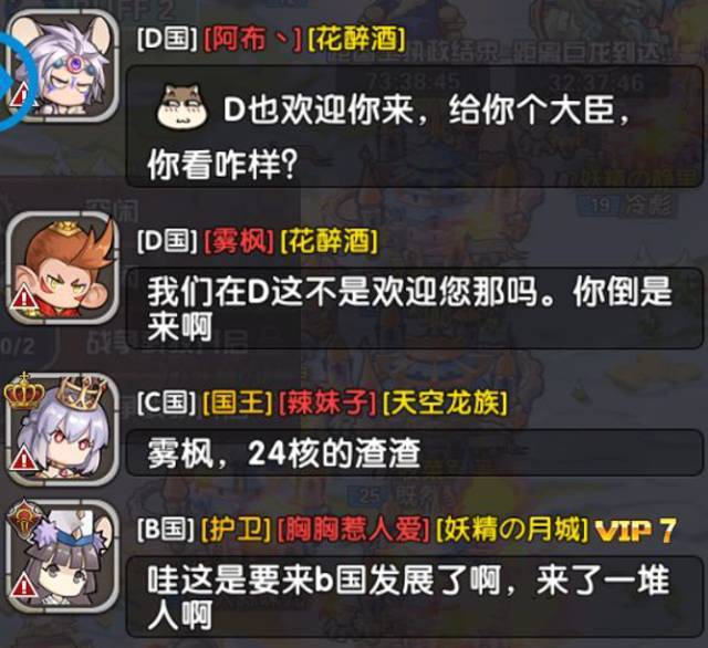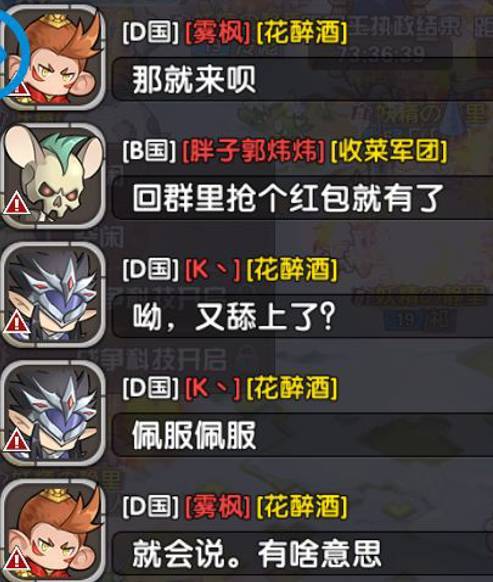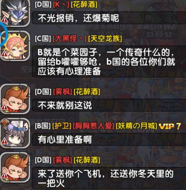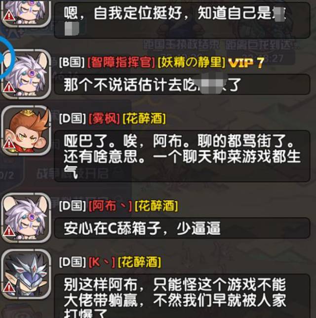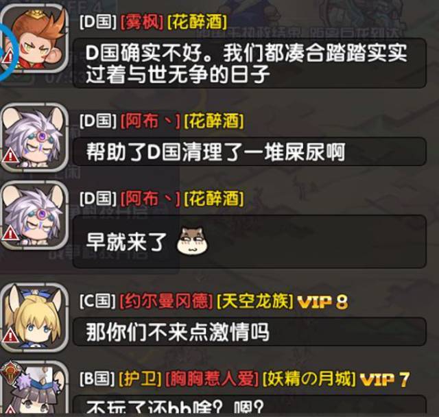 在B国纷争期间,一些不甘寂寞的吃瓜群众纷纷以各自的言语参与了这场大戏,只是也因此为之后大战的爆发埋下了诱因(过程内容过多,笔者就以图片展示聊天内容,及形式的变化)