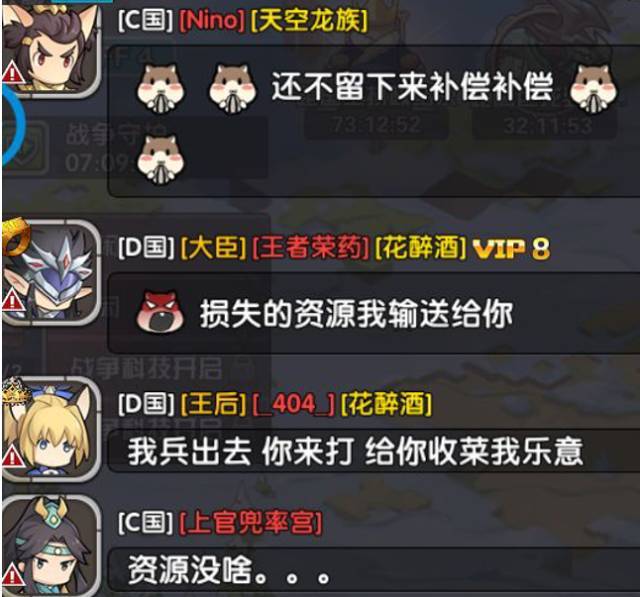 整个世界的互相叫嚣,似乎也因为黄泉的这一句问候而暂时停止了硝烟.(事实上黄泉空降D国之后,除了抢占了4个8级粮食矿,并没有对花醉酒的城堡进行收菜)