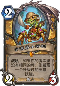 芬利是宇宙骑和其他宇宙卡组唯一不同的点,升级技能后我们可以选择更好的技能来转变对局思路。如果遇到快攻或者需要解场的对局,我们起手摸到可以选择小德的变脸、法师的火冲、盗贼的双刀(注意因为我们构筑有神秘之刃、真眼圣剑、还有弗丁武器,所以在前面两者没有选到的情况下再选刀)如果遇到战士、或者中后期对手血量不多的情况下,我们可以果断选择猎人的射箭,当然血量差的很多可以选术士的抽牌。2费23的身材起手就可以留,我们只要大概确定对手的卡组即可。