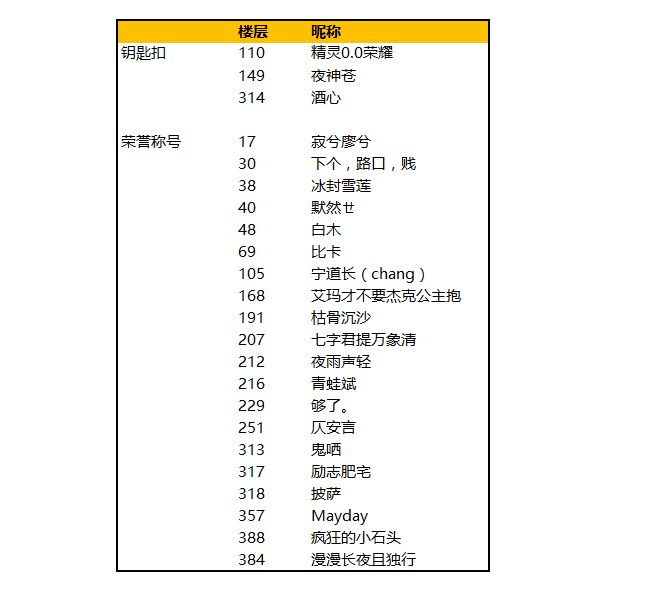 恭喜以下卡牌大师获得周边&荣誉称号奖励。