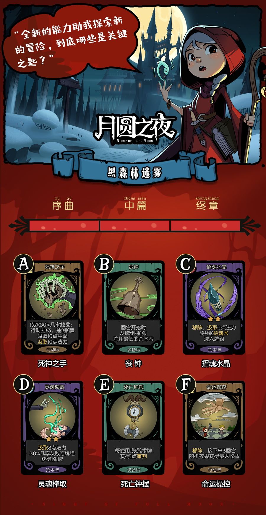 黑森林的旅途中,小红帽有一次选择两张卡牌加入牌组的机会。