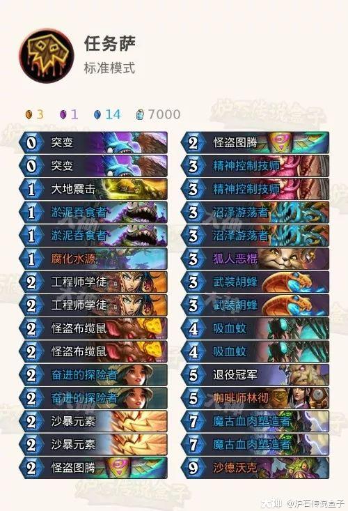 Box君整理完数据之后发现这套卡组竟然排到了T1的顶端,也是吓了一跳,所以赶快和大家分享一下这套萨满的故事。