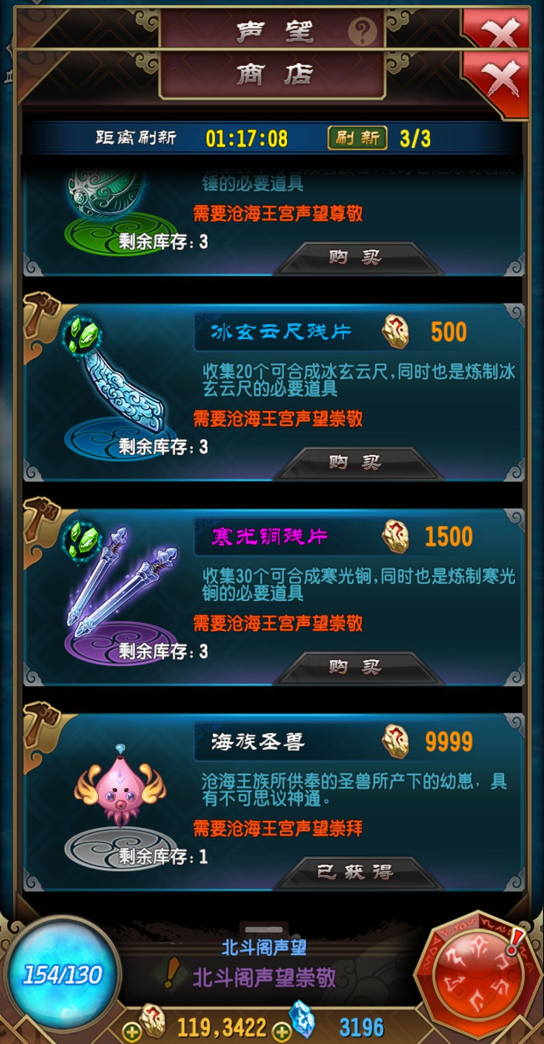 宗门的藏经阁,声望够了才能买材料,不买就会做法宝比别人慢一步。有些低级法宝比如射阳箭,凝液没买齐就升到华晶,箱子里就开不到了,碎片要到很后期的副本才会出。