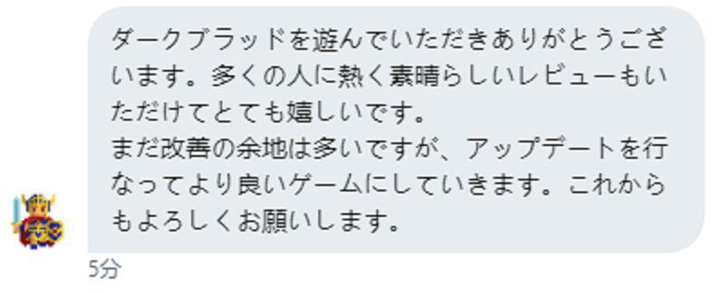 开发者村上先生:“感谢大家品玩《暗黑之血》。收到许多玩家热烈而精彩的评论,我感到非常高兴。虽然还有很多改进的余地,但相信后续的更新,能为大家带来更好的体验。今后也请多多关照。”