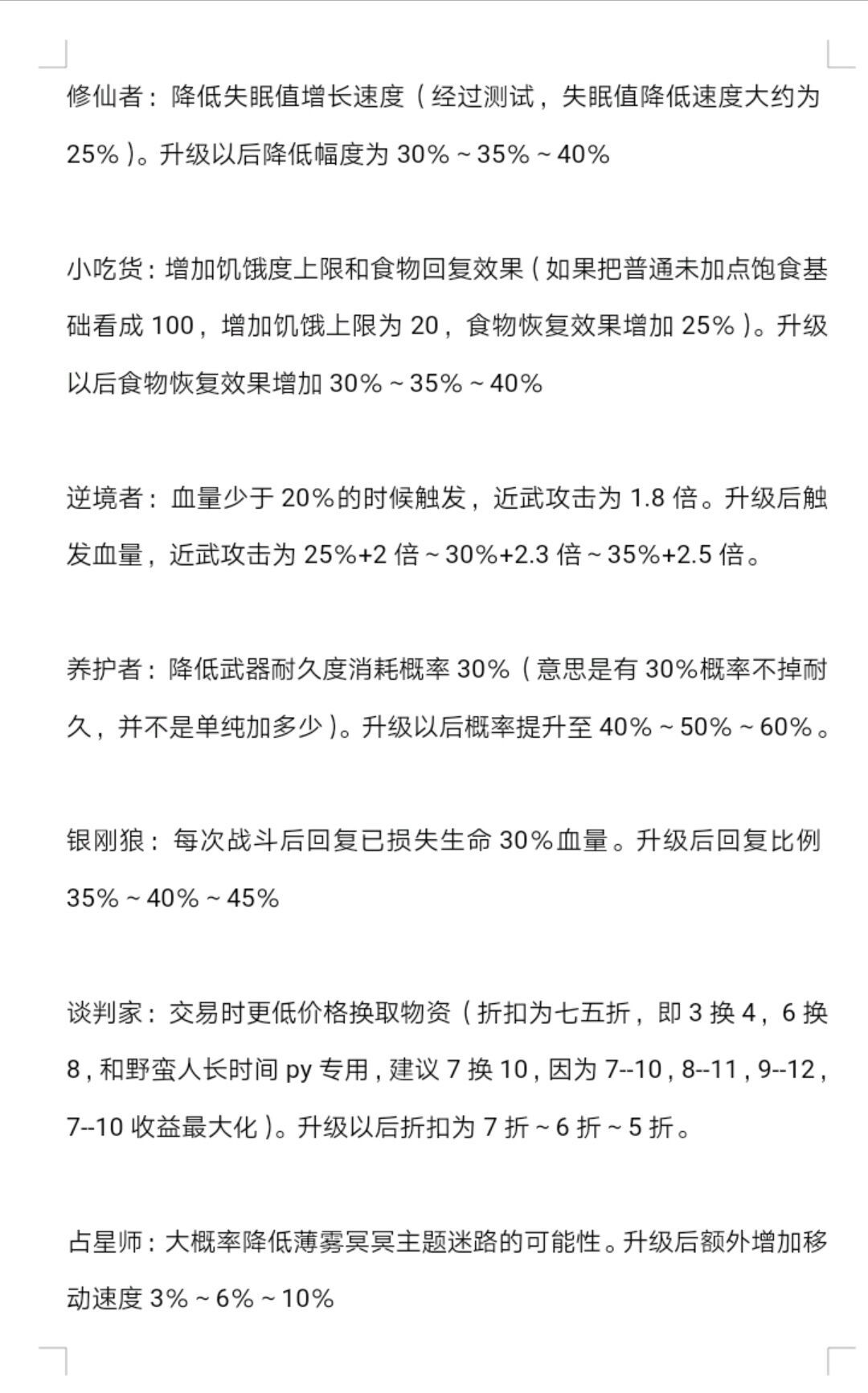 不怎么推荐升级的天赋
