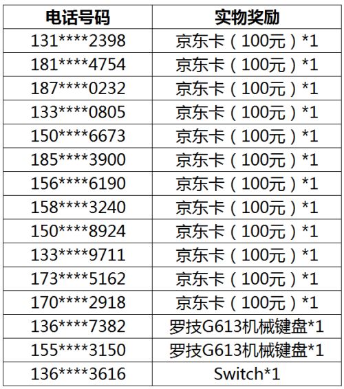 截止到2月27日,我们已经抽出了12张100元京东卡,2台机械键盘,1台NS!恭喜下面这些好运爆棚的船长,就等着我们工作人员的电话吧!
