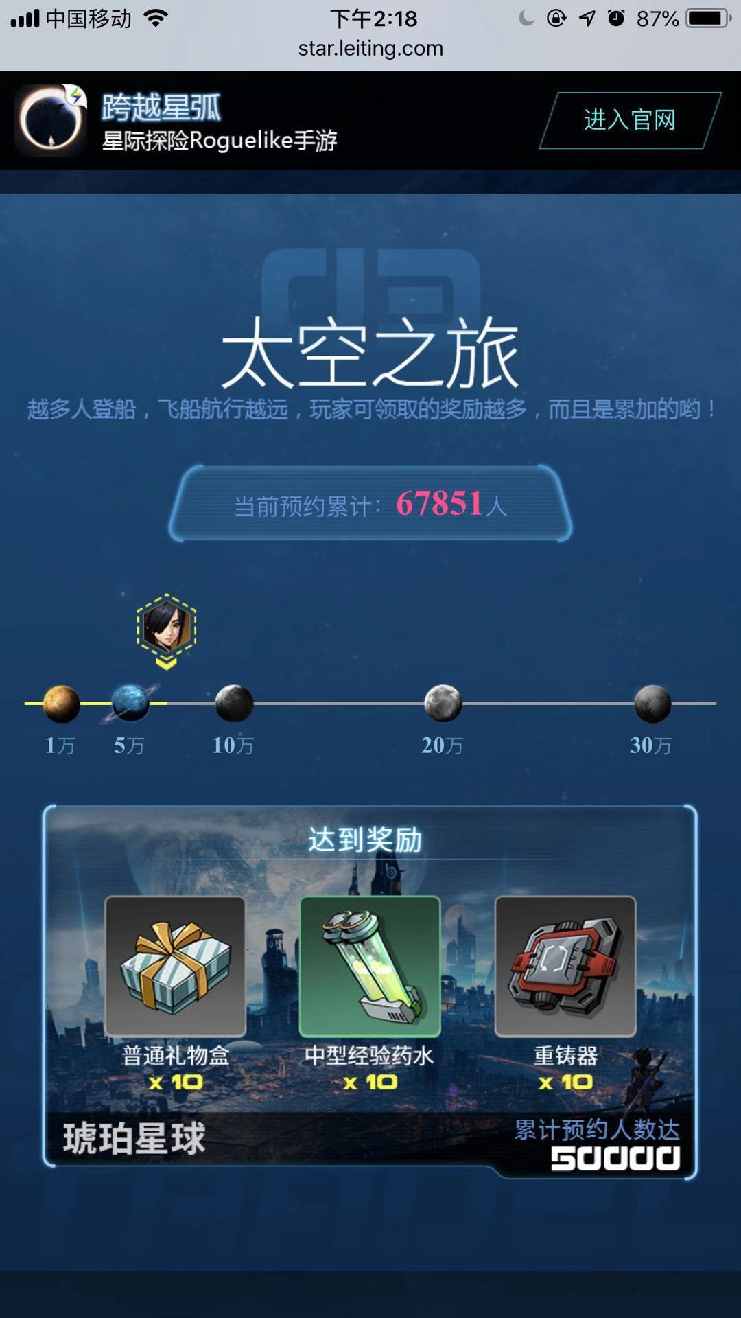 累积5万人预约:全服发放普通礼物盒*10、中型经验药水*10、重铸器*10【已达到】
