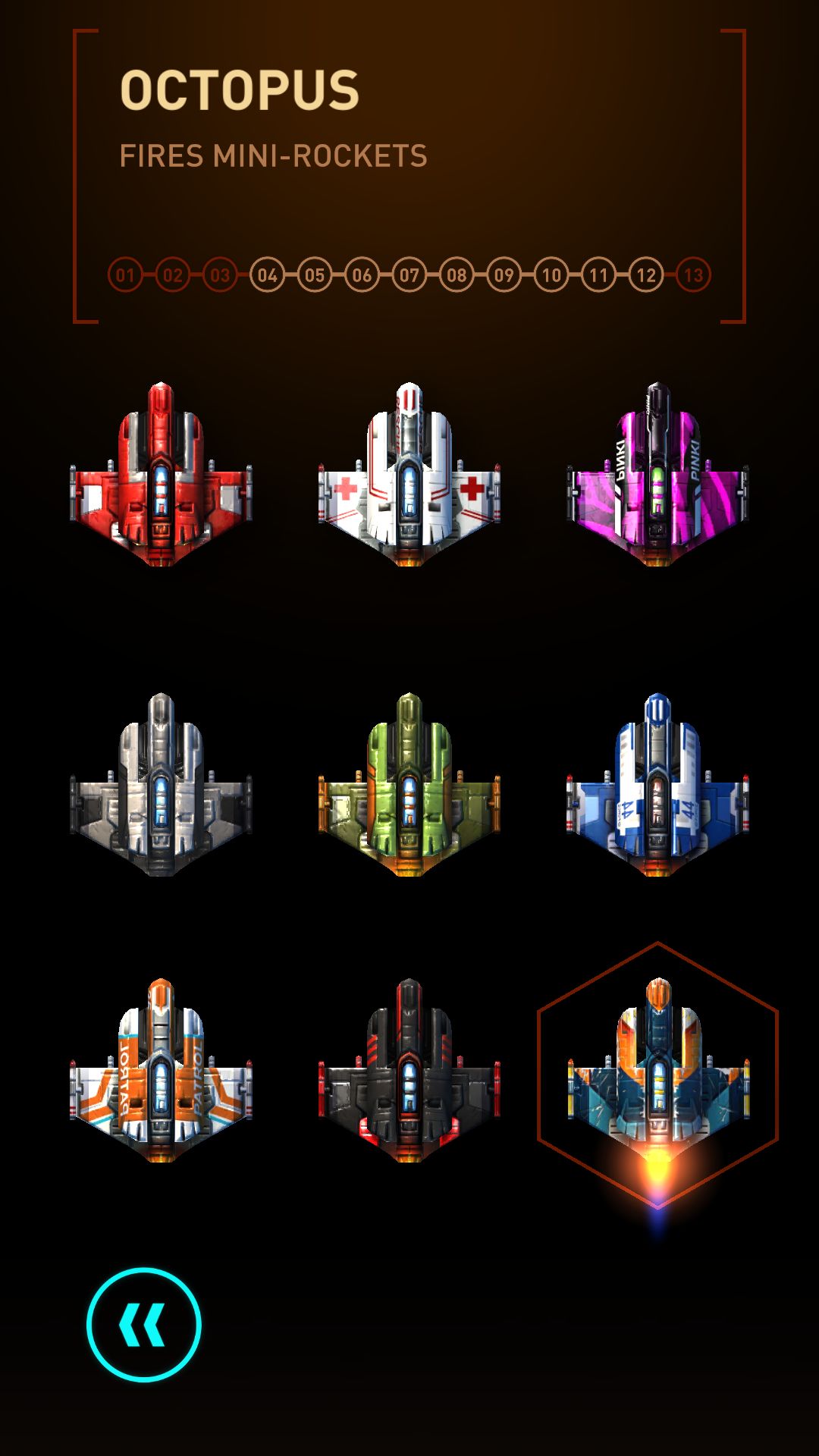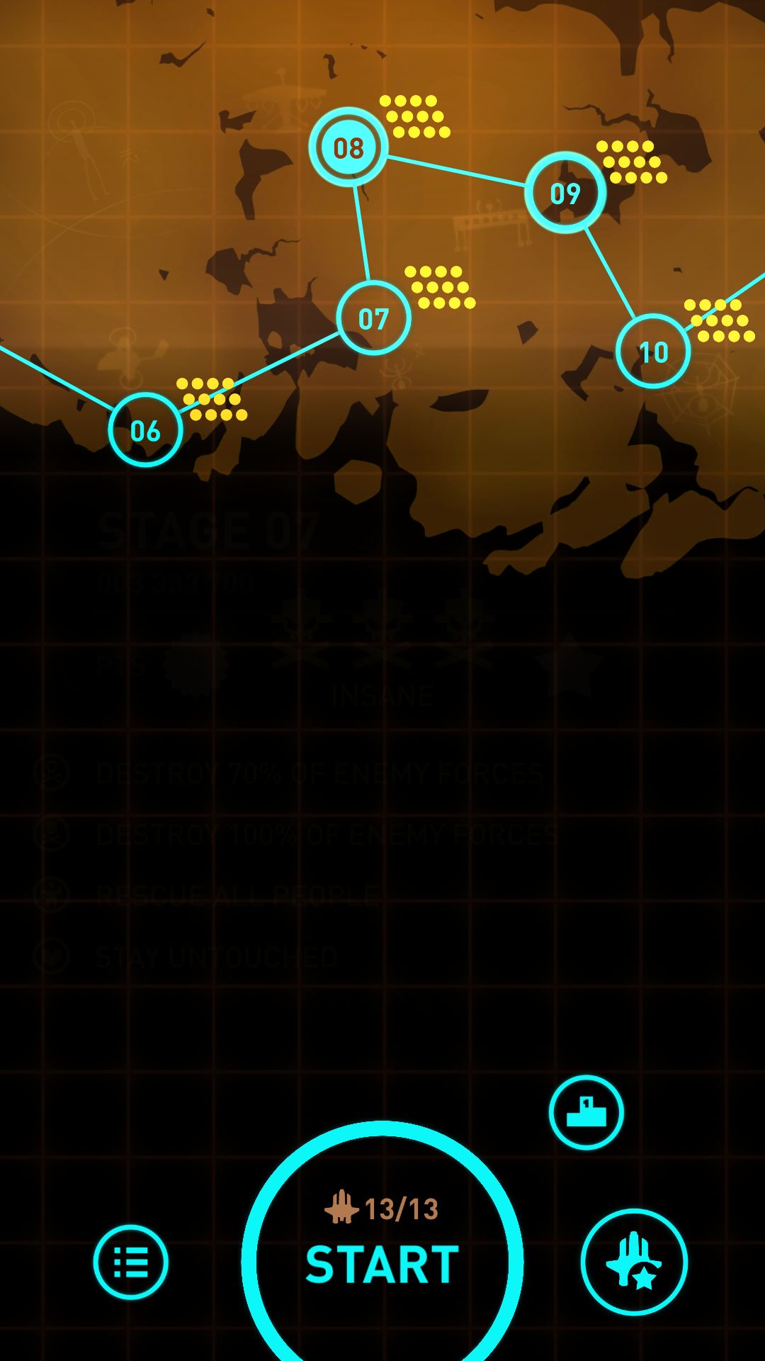 再次,来说说飞机属性和驾驶员的属性,飞机一共9种,效果分别是普通,救人快,射的快但是射的短,主武器+10%伤害,加血减速度,加速度减血,火力最大,幸运星,导弹分裂。其中前期推荐使用加血减速度的绿飞机,我通关一直用的它,刷碎片推荐幸运星,然后后期推荐导弹分裂,十分好用。驾驶员是需要成就获得的钻石来解锁的,第一个驾驶员是使一个随机的箱子里面充满100左右的星星,数量我没确定过具体多少,第二个是多一次防护罩,在你掉血前抵挡一次伤害,注意,对只能承受一次攻击的飞机无效,第三个是自动释放超级武器,根据你飞机身处的环境自动释放护盾,激光,核弹各一次,第四个也是幸运星,增加各种幸运,简单的说就是几率触发的变成必定触发,箱子里面更容易出货,第五个是减慢敌人的子弹速度,无伤很简单。后面的暂时还没有开启,等开了之后再补足。