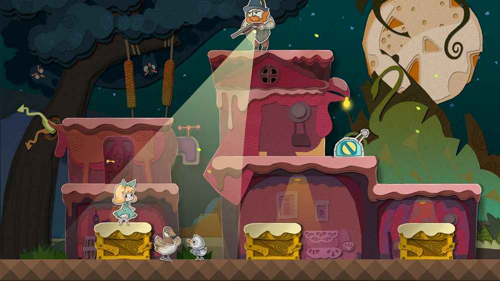 拖动多层纸片,随意改变场景的空间变化,以“阶梯式”上升下降的解题方式,让玩家思考如何趋利避害,完成任务目标,抵达出口。不得不说,本作在谜题等关卡设计上,依旧保留一贯的风格,趣味又烧脑,虽比起前两作,难度有所降低,个人觉得是照顾了部分新手玩家,稍显简单,但恰巧适合童话题材,一关关,一层层剥开迷雾的过程,很让人过瘾。