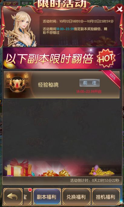 10月12日 18:00-23:59 经验秘境翻倍