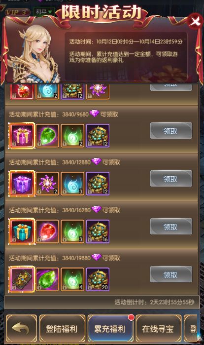 活动规则:活动时间内累计登录对应天数可获得丰富奖励