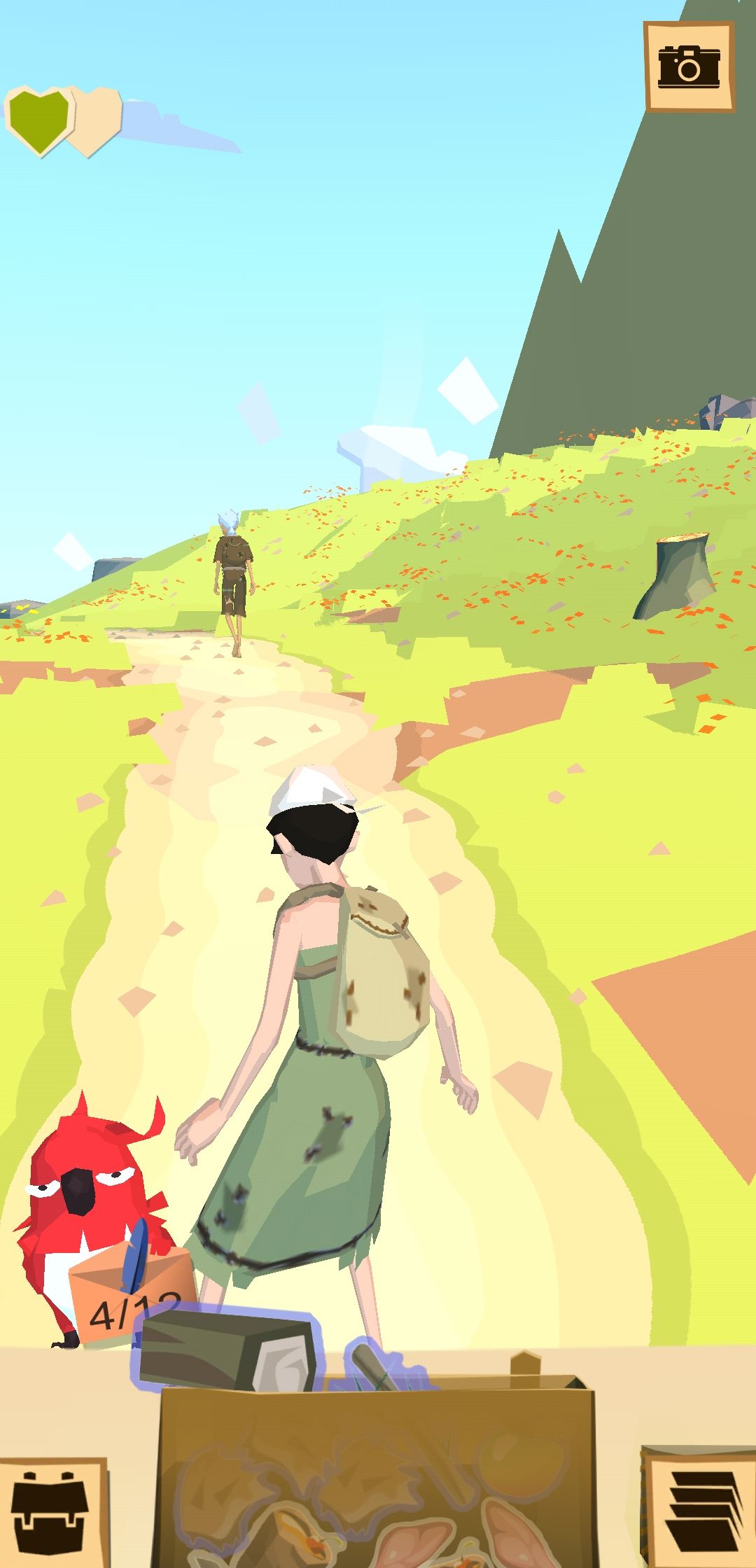 路上遇到一个NPC晕倒了,果断捡他掉的东西,路上还是捡兔子毛料,到下一个营地做成简易头巾,因为有斧头所以我又砍了两棵树做了一只木雕鸟,砍完树之后有一把石斧剩一个耐久,在下一个营地卖掉捡的木雕鸟和做的木雕鸟还有两把石斧,两个简易头巾,过河费就凑够了,这次交易也得到了顶级商人奖励,也是一个鸭羽毛