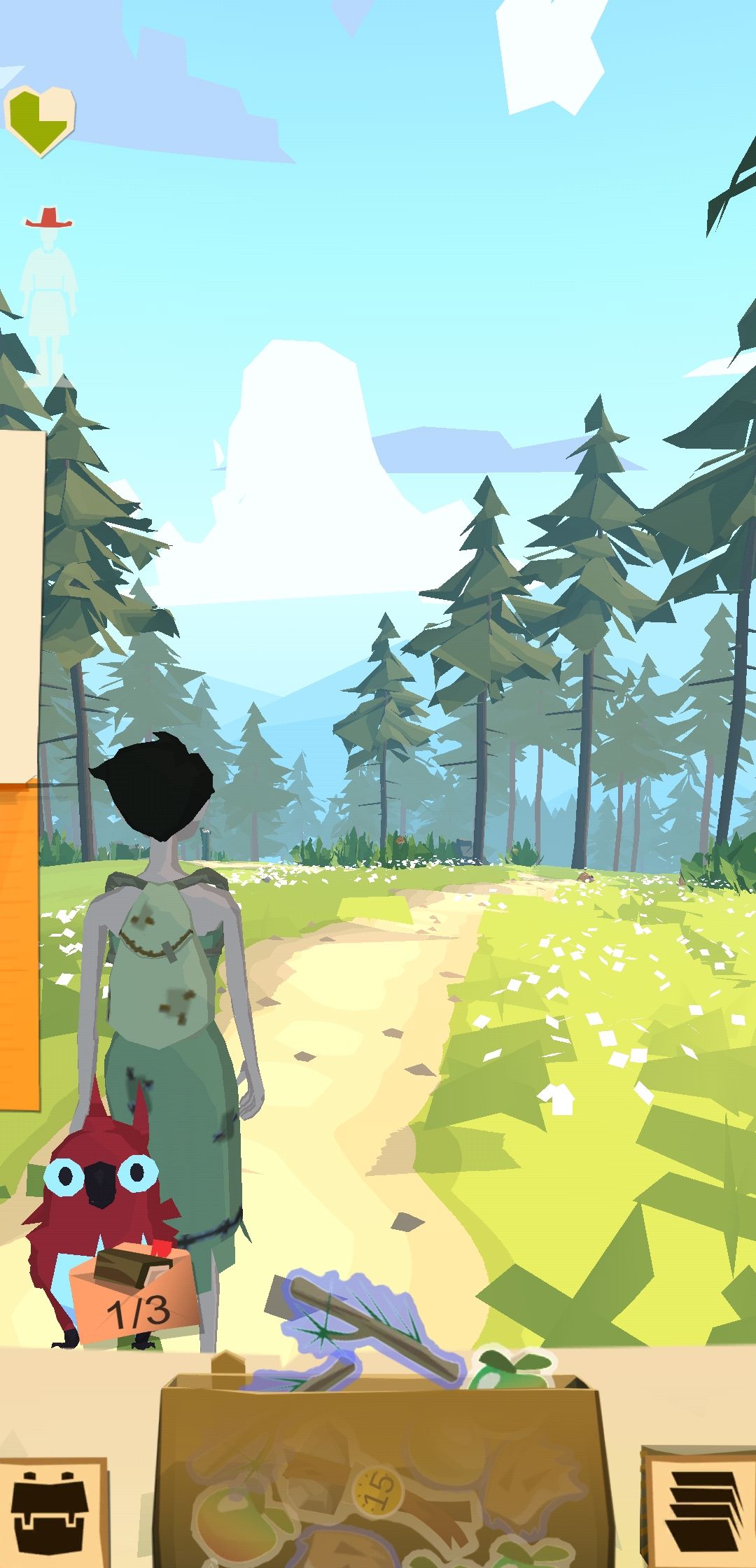 下面这段路上遇到的东西只捡兔子毛料和任务的树枝就可以了,苹果和石灰质卵石后面都会捡到,不用在这个时候占背包空间而且耗费体力