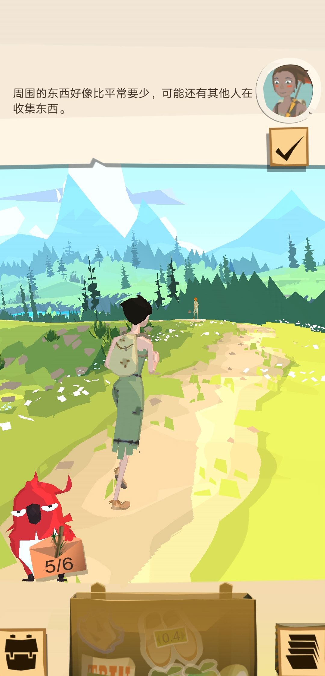 紧接着向导提示到下一个营地看看能不能把之前做的鞋子换成钱,还提示路上有其他人在收集东西