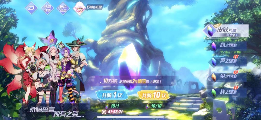 在声之回响中,使用声之水晶可以抽取武魂卡,魂石旋律之实等道具~