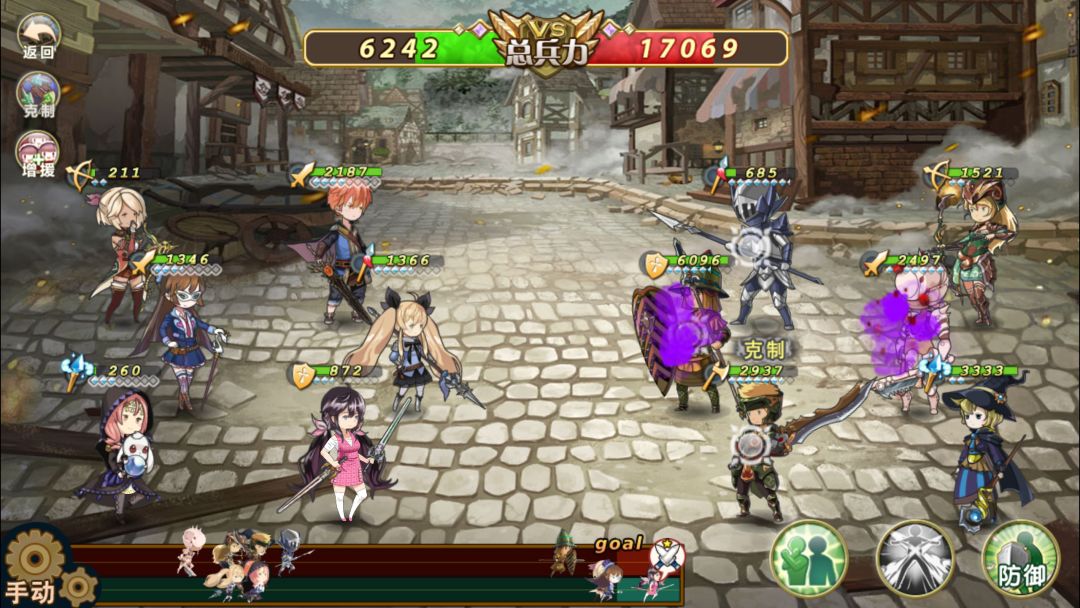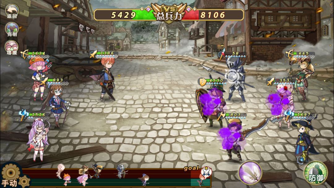 初始站位就是上图,对面这个阵容最具威胁的就是那个弓箭,所以要先用赵云和张辽压他的血,顺便加上萌货把长枪兵打残,让之后上来的艾斯能站住。第一回合萌货攻击长枪,张辽蓄力上排,赵云二技能上排,刘备减刀兵武力他基本就废了(其实29级更好,刘备可以在刀兵前出手能站更久),于吉给魔剑放毒,魏延给魔剑放血(魏延会被弓箭平a一下,但是好像不影响流血伤害?)