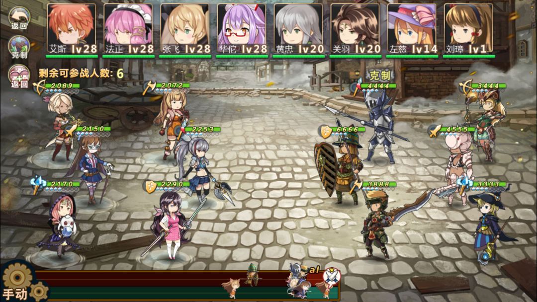 再说下配置,刘备,张飞,艾斯,于吉,华佗,法正,魏延,张辽,萌货,基本都是300左右招募,4级统帅,可以看到我下面好多都是2000出头的血。武器等级也没什么硬性要求,能保证4级速度宝石就行,实战看哪个环节有问题再强化。
