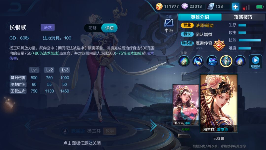 先让我们看一下杨玉环的技能