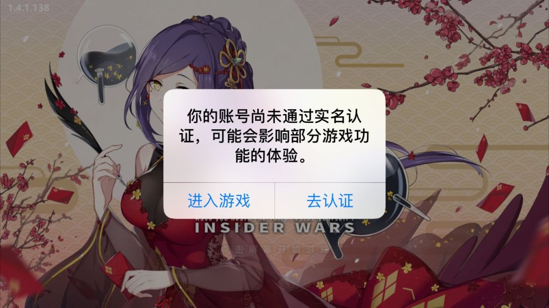 老账号在进入游戏时将收到如下提醒,表明账号为“未实名”状态,请不用担心,按提示填写实名信息即可。