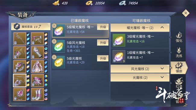 在增加斗气的时候要以提升自身属性为主,像强化、魔核这种有套装属性的还要注意优先套装等级。