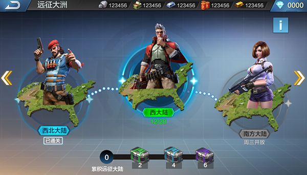 各个大陆的难度系数都不同,每次挑战关卡胜利时,指挥官都会获得该关卡的奖励。累计到一定关卡胜利还能激活宝箱奖励。而该玩法战斗过程中,都是使用系统士兵,不会损兵。所以,各位指挥官可以大胆地向着宝箱奖励冲击!
