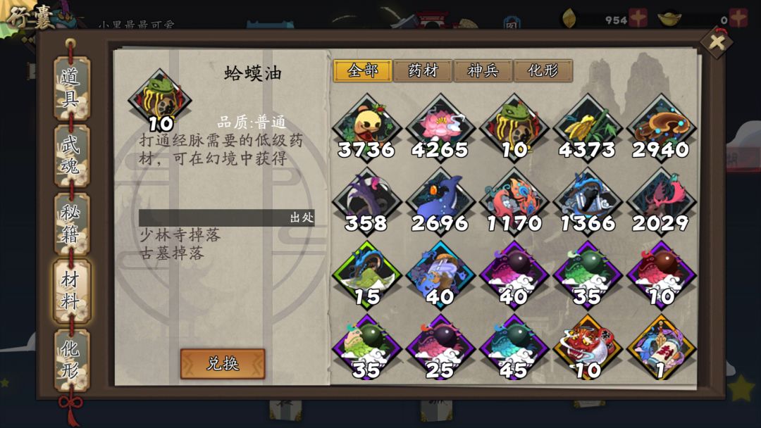 每天刷两次地狱血战少林,别的材料四千左右,蛤蟆油才十个???